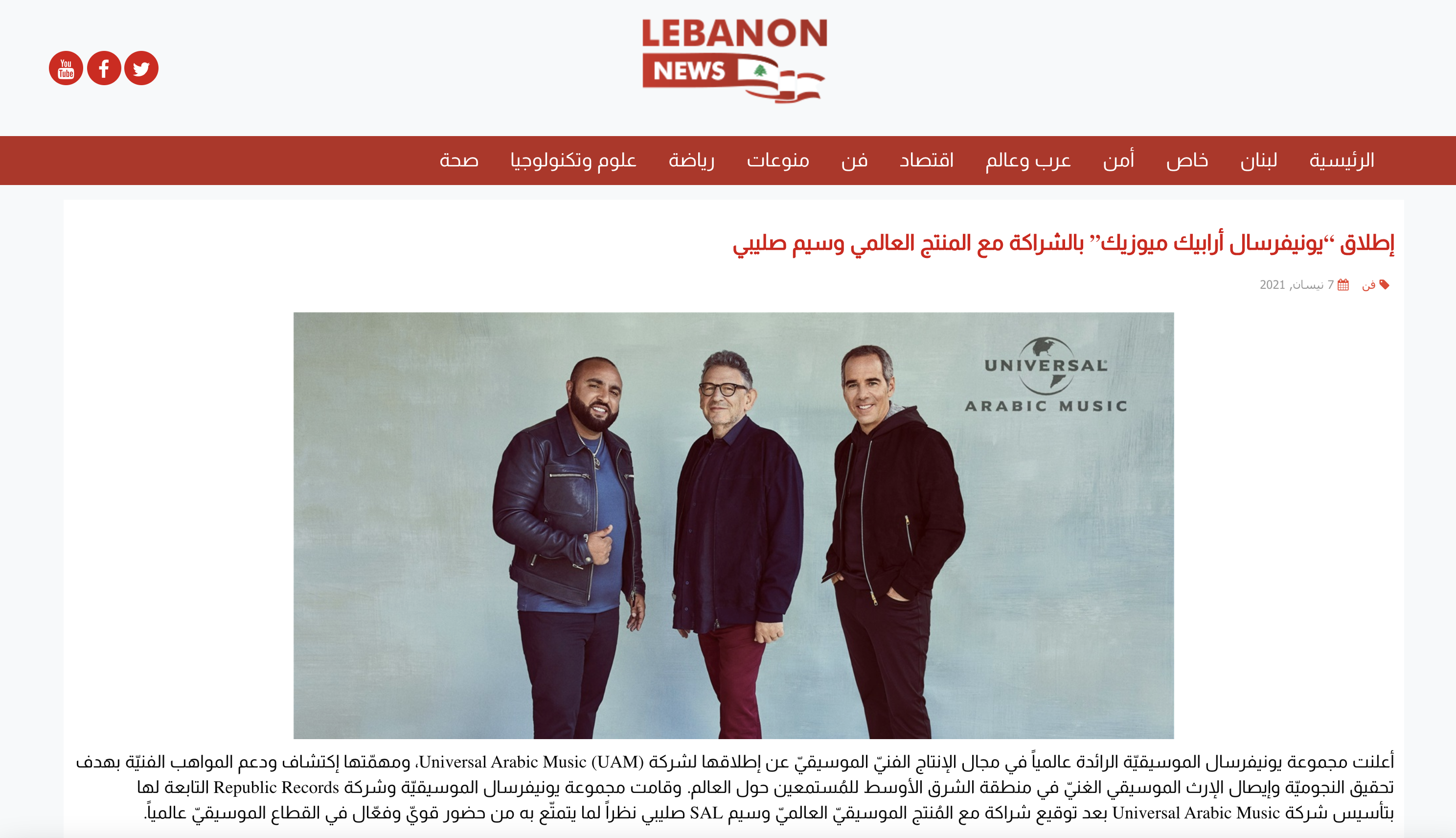 اطلاق Universal Arabic Music بالتعاون مع سام صليبي